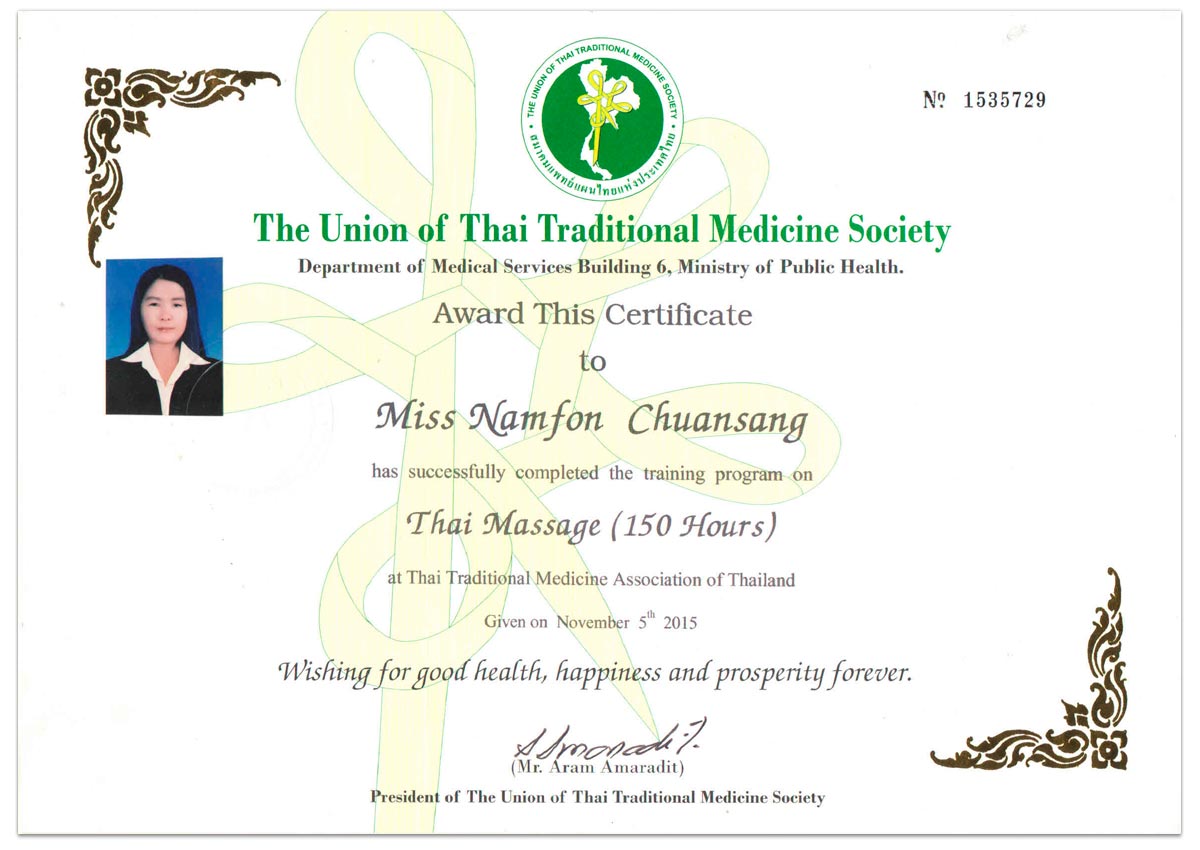 Namfon или просто Nam(по-русски Нам) выросла в большой семье в атмосферном тайском городке Angthong. Массажем она увлеклась ещё с ранних лет, и тем человеком, который привил ее страсть и интерес к этому древнейшему искусству стал ее первый учитель Janjamon Comde.